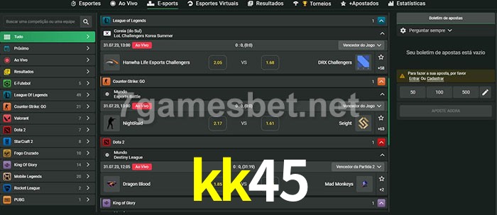 O kk45 oferece uma grande seleção de opções de apostas em e-sports com probabilidades competitivas